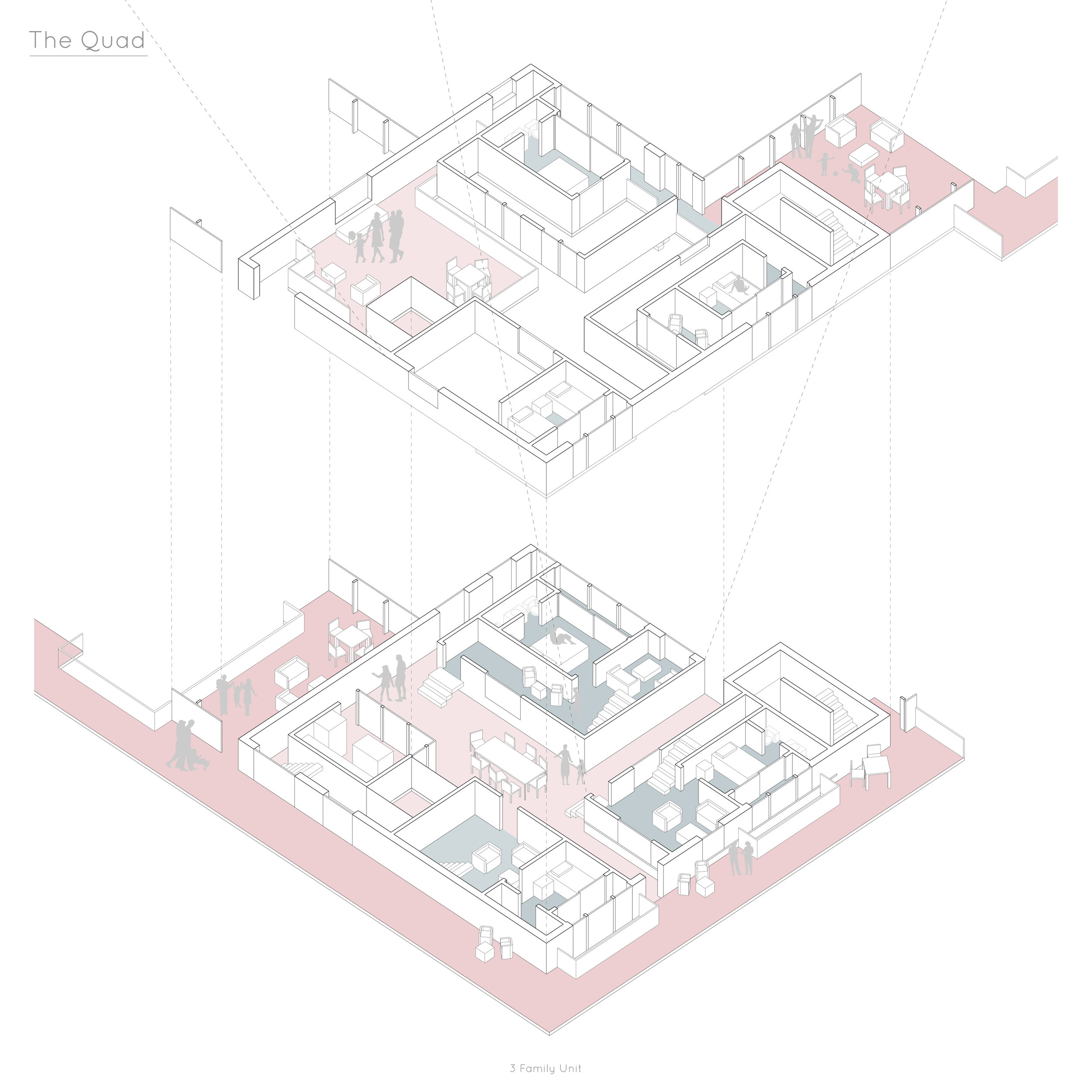 In this studio, we will focus on coliving for ‘urban families’, defined here as a contemporary social unit with inherent kinds of dependency and specific mutually beneficial relationships. Students will consider coliving scenarios for two distinct populations whose needs and lifestyles, when brought in dialog, create win-win situations beyond the merely economic advantages of sharing dwelling space. This might entail an exploration of generational dependency (between adults and children, adults and seniors). Alternatively, students can explore what we might call a contemporary dependency composed of two different populations of a similar age group, but with distinct needs, for whom coliving creates mutual benefit.