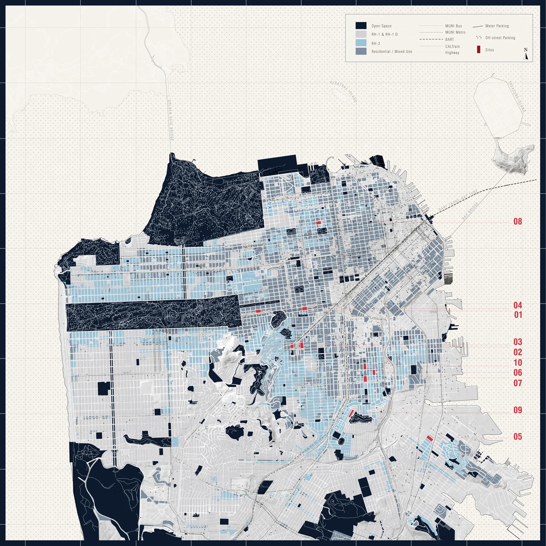 In recent years, San Francisco has become emblematic of the difficulties of managing rapid urban growth in a culture entrenched in NIMBYism. The influx of jobs, primarily in the tech sector, and associated wealth from these industries, has caused rents and housing prices to soar to the highest in the country, widespread gentrification, and socio-economic homogenization as the lower and middle class continue to flee the city. One of the challenges in providing new density to the city is that the image of the city, which is associated with its civic identity and tourism industry, is closely linked to a romantic vision of Victorian housing. Mayor Ed Lee has plans for the construction of 30,000 housing units by 2020, which, while ambitious, according to the City’s Chief Economist, to noticeably impact prices, at least 100,000 market-rates units would be required.1 One of the inadvertent outcomes of the housing crisis is the widespread creation of secondary (in-law) units, smaller units embedded within or located upon one’s property. Currently, the city estimates that over 50,000 illegal secondary units exist within the interior2; hidden in garages, attics, or the rear of homes. Because of their illegal status, these units are not regulated to comply with building, health, or fire codes. Recently, in March 2014, The Planning Commission of San Francisco gave unanimous support to legislation that would allow property owners in the Castro District to legally build secondary units. Viewed as a pilot program, the legalization of secondary units is a large part of the puzzle to address the current housing shortage in the city.