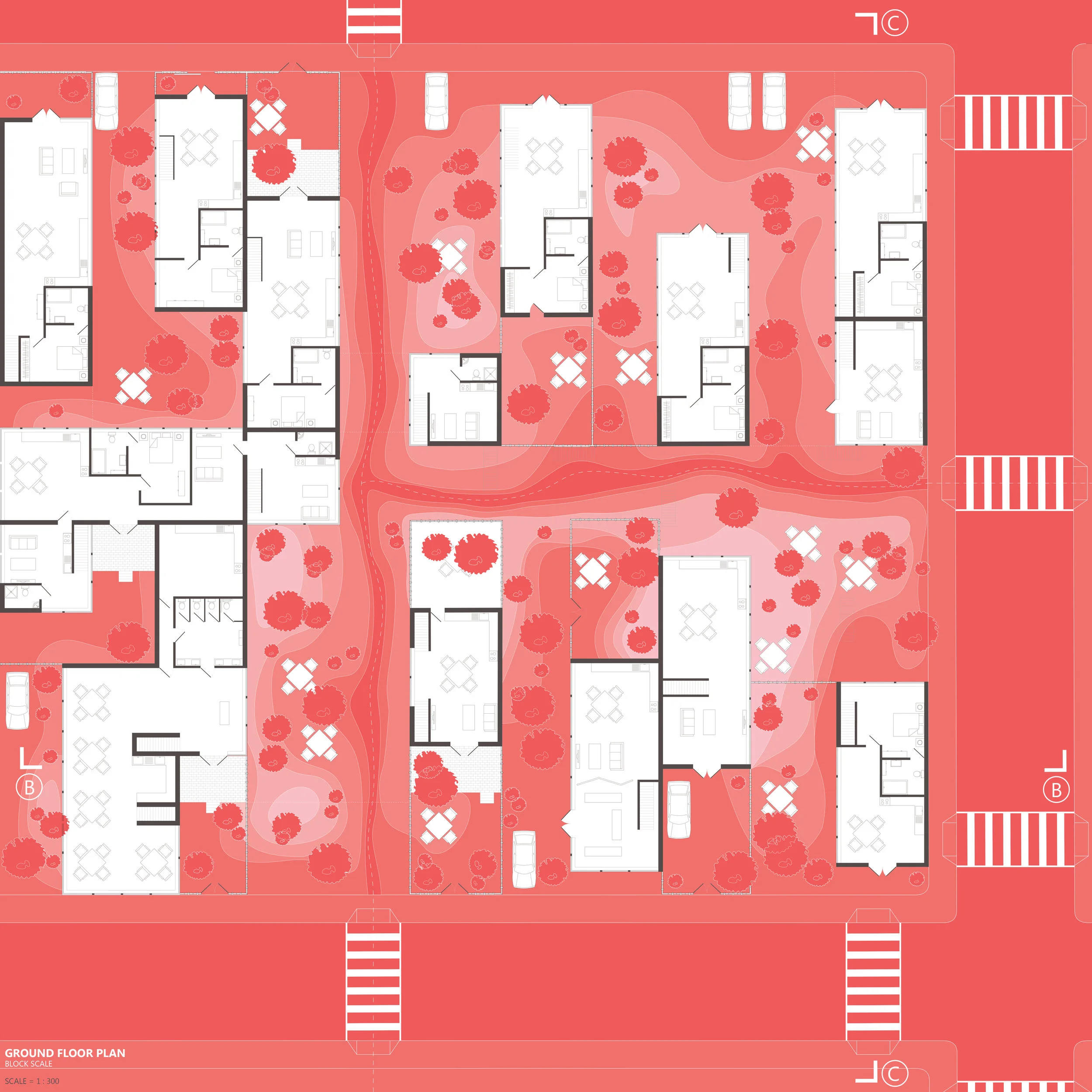 Zoom in to the scale of half of a city block to resolve programmatic and aesthetic design questions raised by your master plan. Make huge graphic narratives to imagine how your design might change over time.